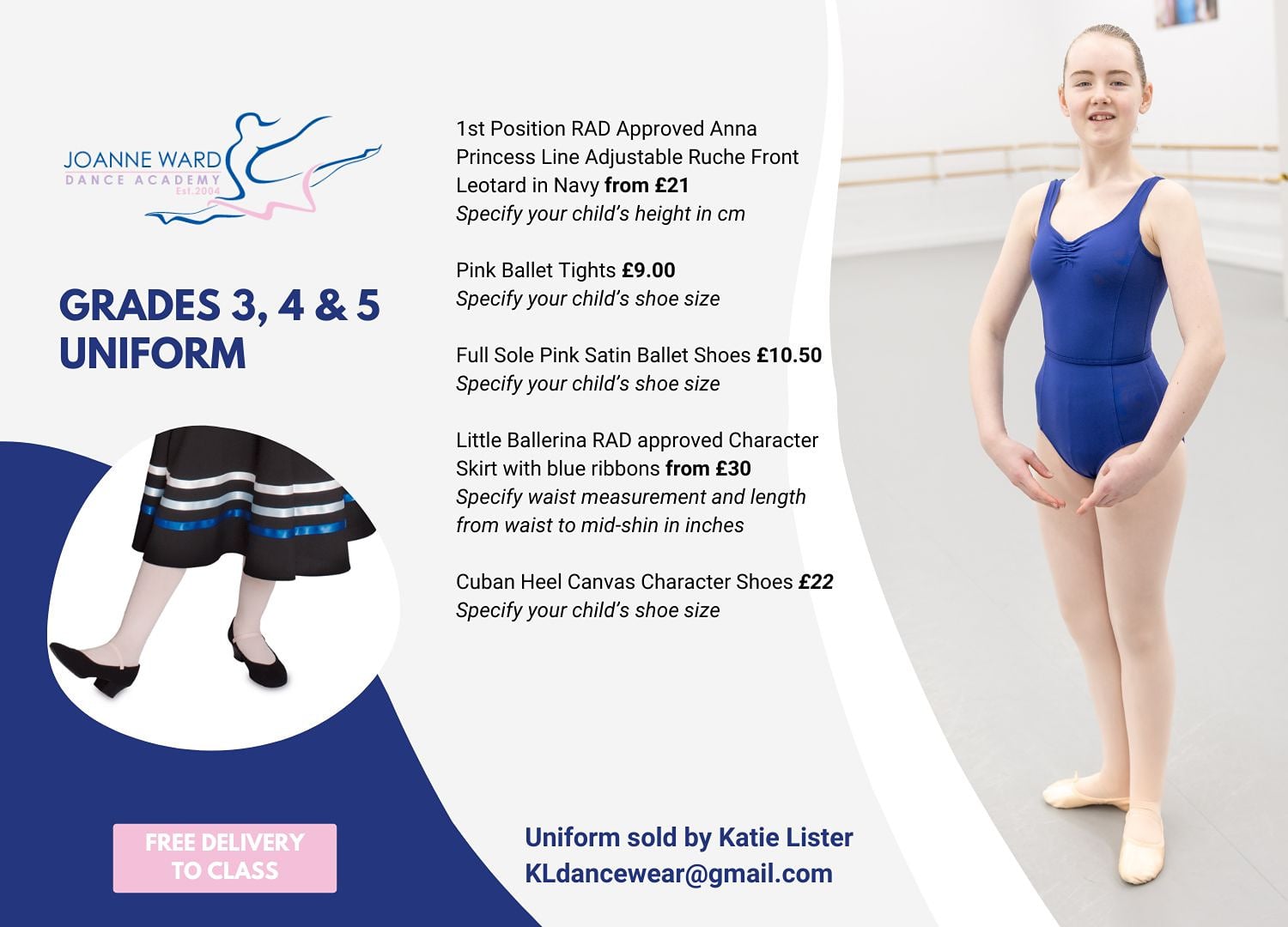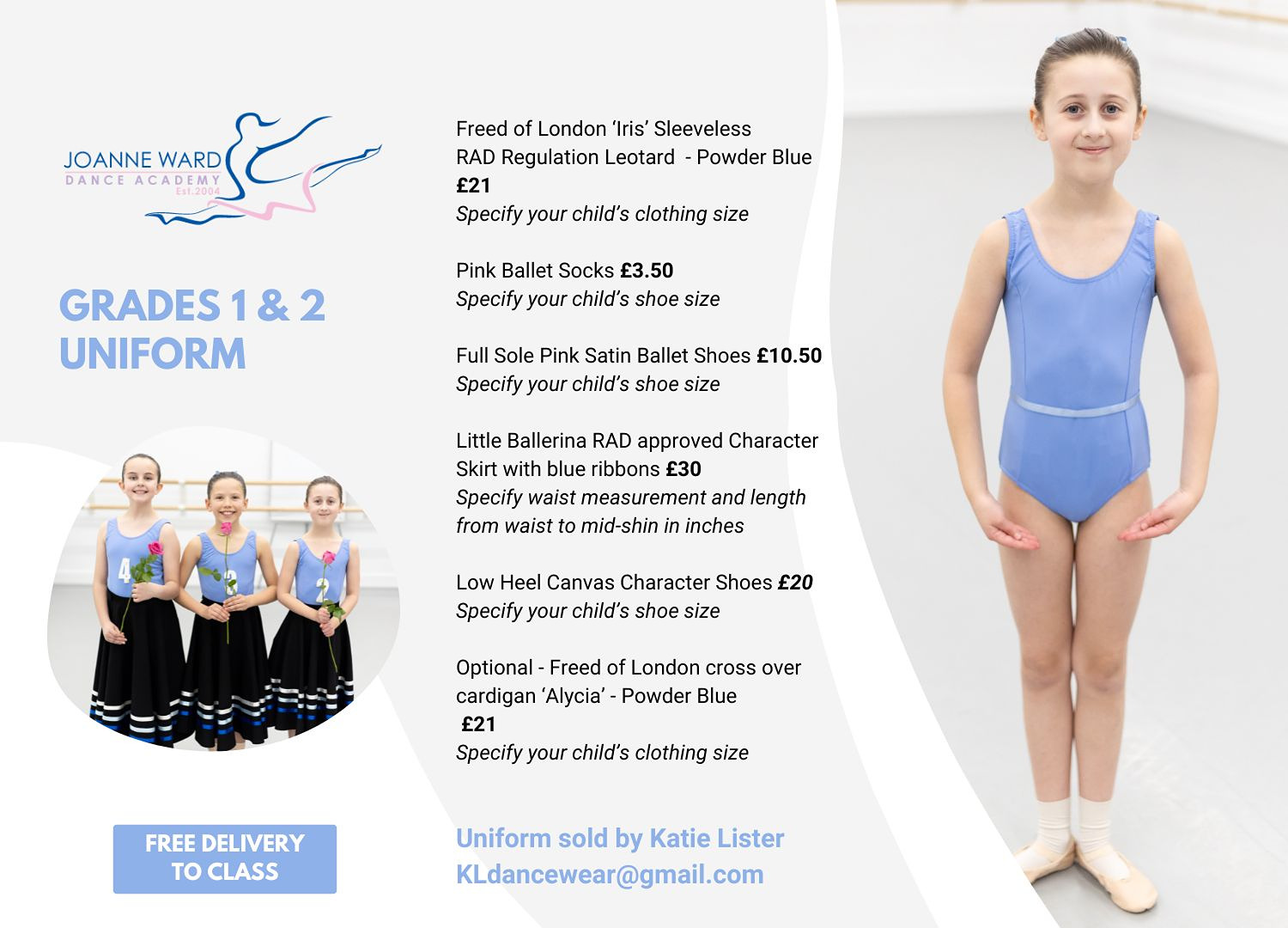 JWDA has a set uniform for all ballet classes which is supplied by Katie Lister (KL Dancewear). Please email [email protected] to place your order, with items delivered free to class.